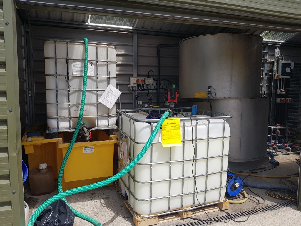 LIQUID POLY PUMP OVER 30 MINS. NO MORE MANUAL HANDLING. NO MORE SPILLAGES. IBCS CAN BE FIXED PERMANENTLY ON BUNDS IN LIMITED SPACE WHERE NO FORKLIFT IS AVAILABLE